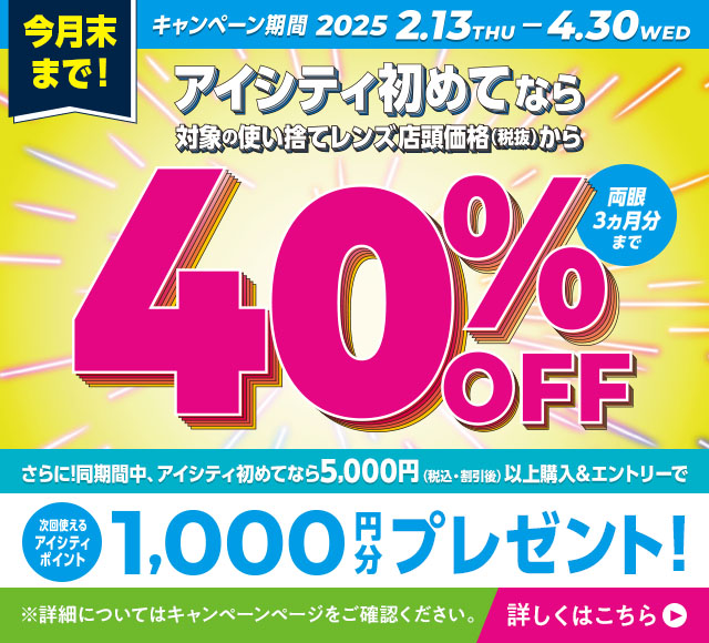 アイシティ初めてなら、対象店舗で使い捨てレンズが、店頭価格(税抜)から30%OFF!12月最終営業日まで!