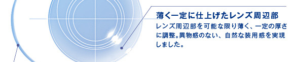 レンズ周辺部のカーブが緩やかで、厚さも薄いので、瞬きするたびに涙がレンズ全体に広がりやすいデザイン。