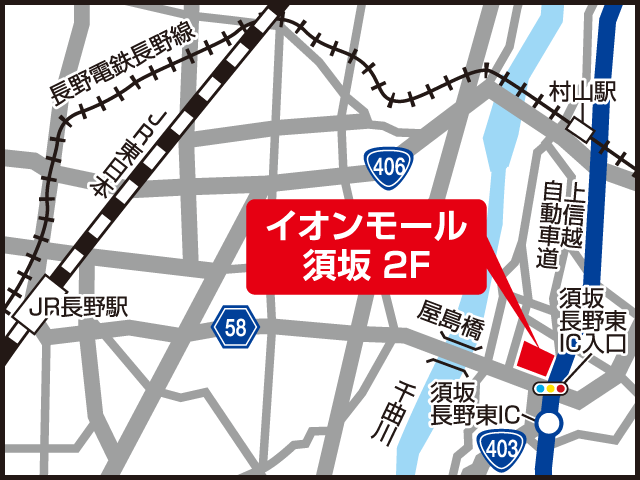長野電鉄長野線「須坂駅」より長電バス約13分 「イオンモール須坂」下車