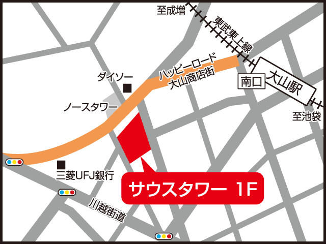コンタクトのアイシティ 大山店は、東武東上線「大山駅」から徒歩4分の「クロス大山 サウスタワー」1Fにございます。