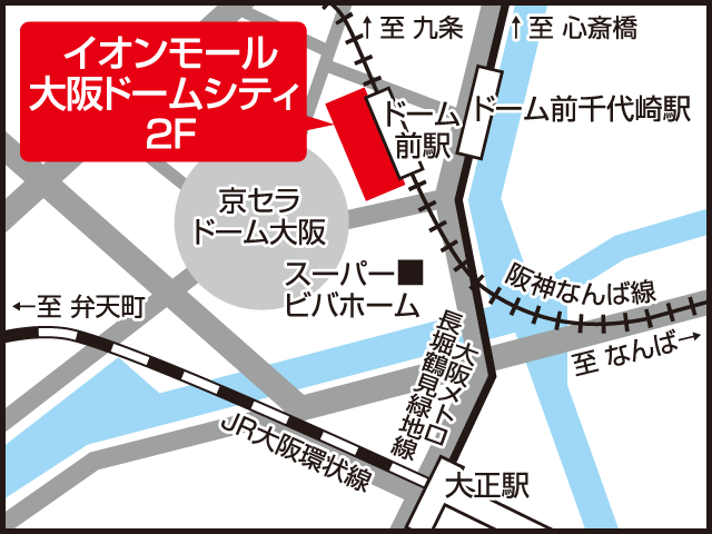JR環状線「大正駅」より徒歩約7分・大阪シティバス「ドーム前千代崎」バス停下車