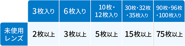 ご購入レンズの保証期間内は「3ヶ月・6ヶ月保証レンズ」は片眼1回限り、「1年保証レンズ」は回数制限なしで無償交換が可能です。